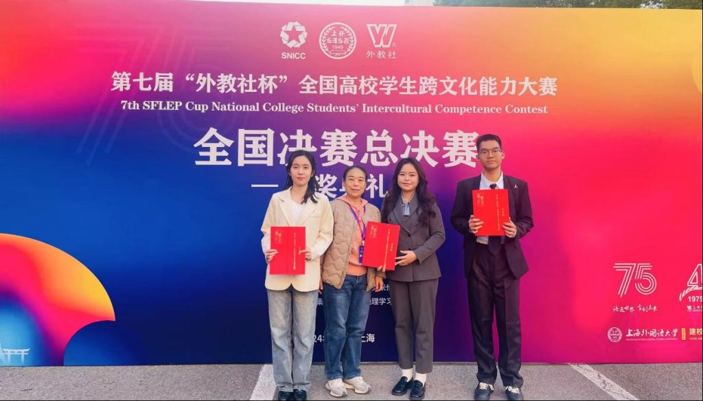 11月28日-12月1日,第七届“外教社杯”全国高校学生跨文化能力大赛在上海外国语大学成功举办。由巩奕含(统计与数据科学学院)、崔又心(统计与数据科学学院)、杨浩然(外国语学院)组成的江南网官方站入口_江南(中国)代表队荣获全国二等奖,公共外语教学部副教授仲蕾荣获优秀指导教师奖,这是江南网官方站入口_江南(中国)在该项赛事中首次荣获国家级奖项,取得历史性突破。