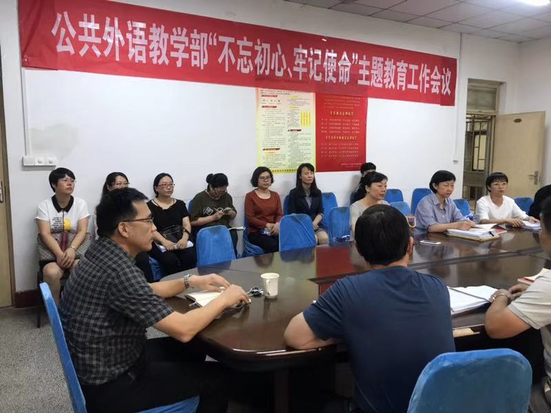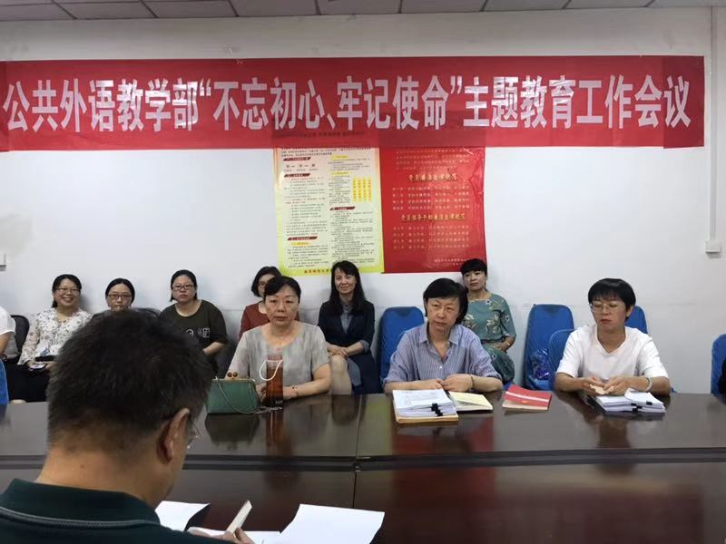 公共外语教学部江南网官方站入口_江南(中国)党支部全体党员教师参加了此次教育工作会议。根据支部会议部署,党员分领了任务,逐步推进开展“不忘初心、牢记使命”主题教育工作活动。