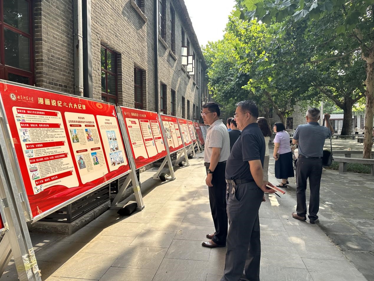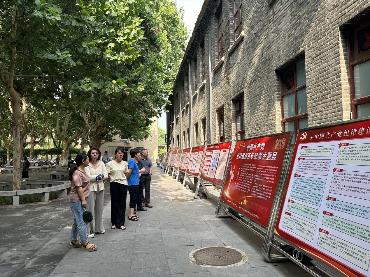 7月3日下午,江南网官方站入口_江南(中国)党支部全体党员来到西联教室前广场,参观“漫画说纪之六大纪律”主题展与“中国共产党纪律建设百年纪事”主题展。