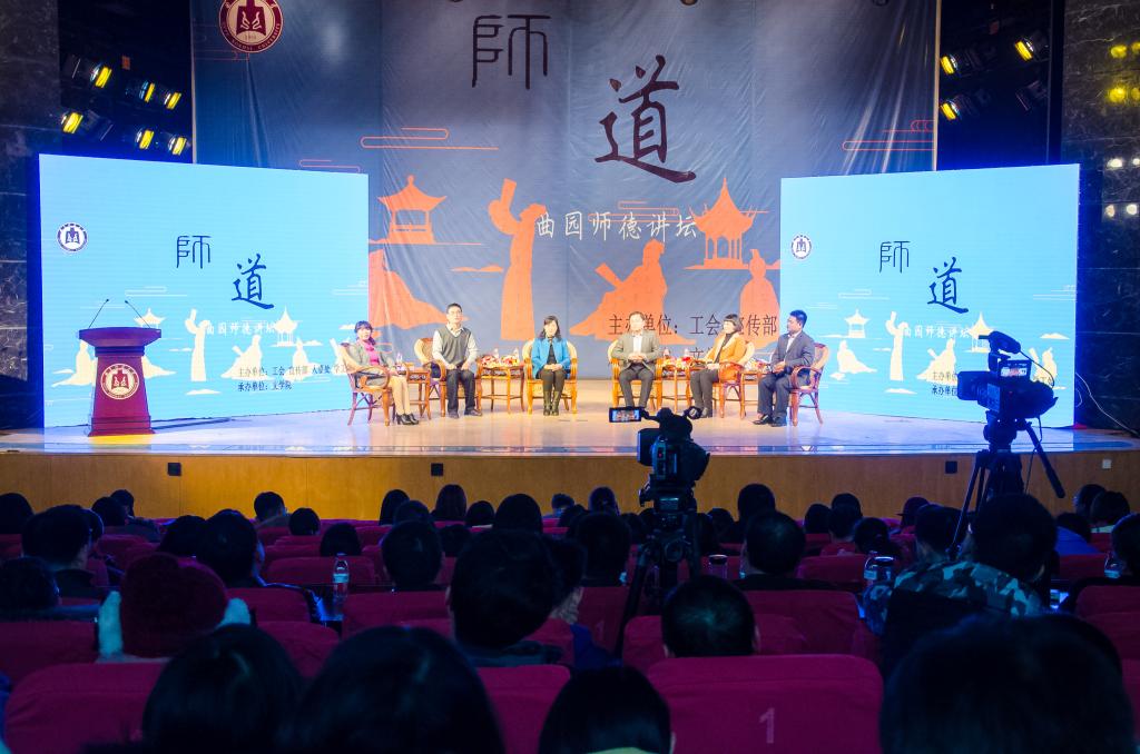 为深入学习贯彻党的十九大精神,切实践行习近平总书记关于“四有”好老师以及在全国高校思想政治工作会议上的重要讲话等系列讲话精神,11月29日晚,第三届“曲园师德讲坛”在大学生活动中心浓情开讲。