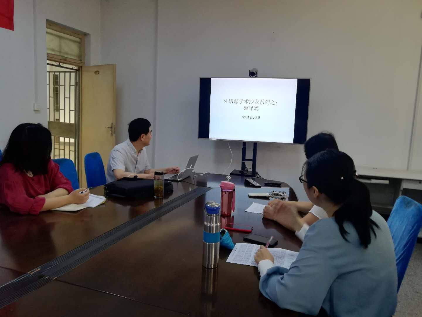 5月29日下午,公共外语教学部江南网官方站入口_江南(中国)2019年系列学术沙龙在121会议室举行。围绕本期沙龙主题“翻译理论与实践”,三位报告人从翻译质量影响因素、翻译态度、翻译策略等层面作了论文展示和心得分享。