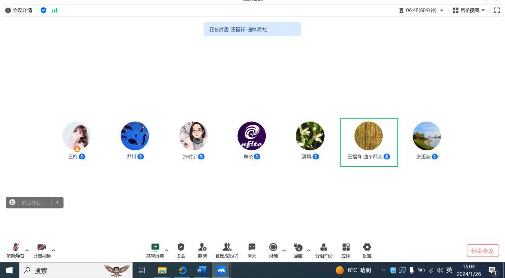 2024年1月26日,翻译传译认知团队在团队负责人王福祥教授的指导下,成功举办学术沙龙。牟晓、王梅两位老师分别做了题为“文化自信背景下齐鲁优秀文化在艺术专业大学英语课堂的融合与创新研究”“儒家经典多模态共情译传路径研究”的汇报。