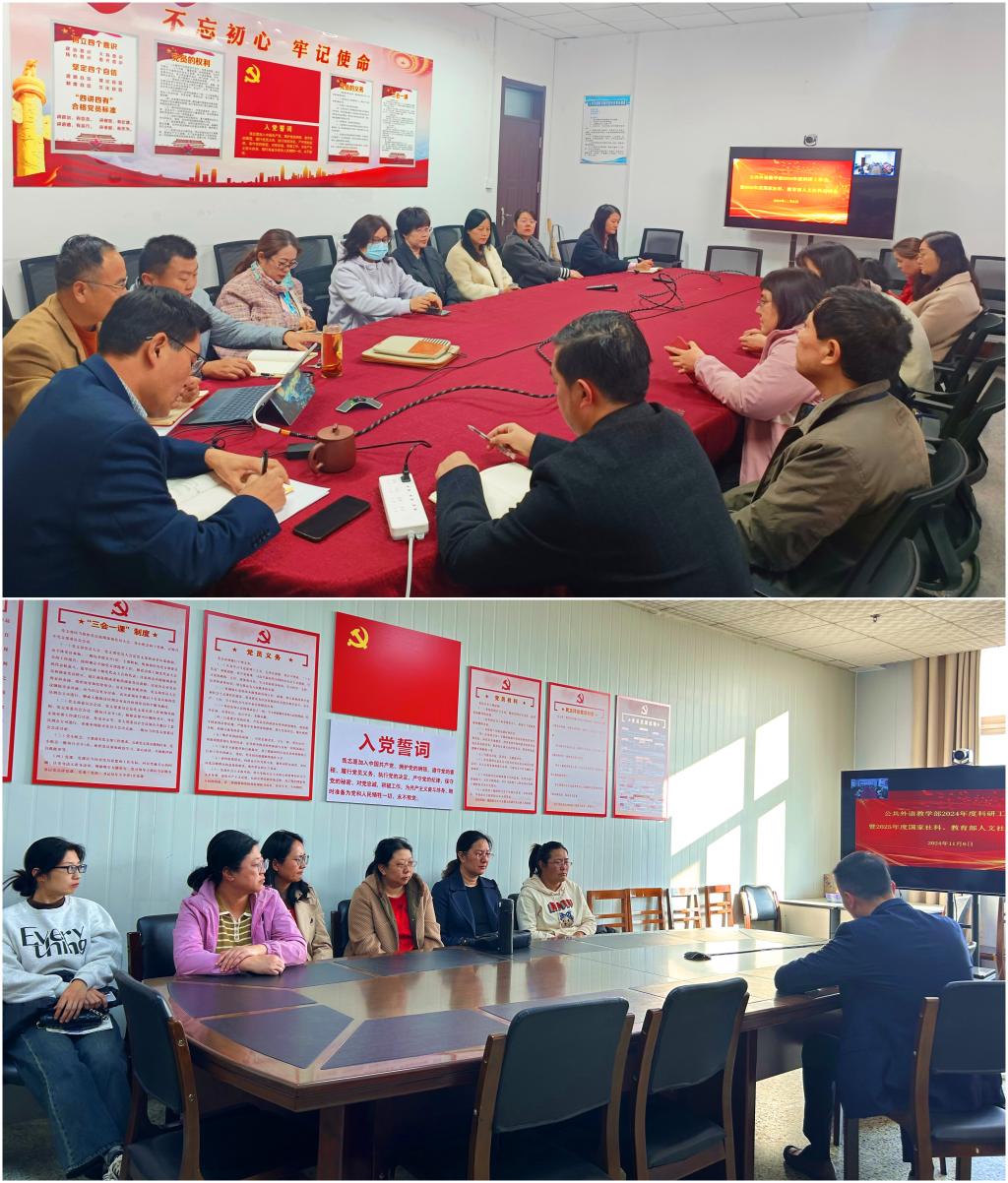 2024年11月6日,公共外语教学部在两校区会议室召开了“2024年度科研工作总结会暨2025年国家社科基金、教育部人文社科基金、山东省社科申报启动会”,旨在总结本年度科研成绩,明确下一年度的课题申报方向,为教师科研工作提供系统支持。部分学术骨干教师参加会议。