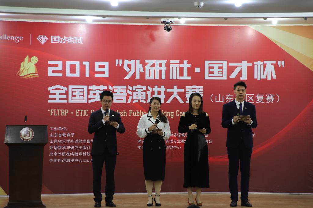 圣人故里聚俊采,切磋共进成国才。10月26—27日,2019“外研社·国才杯”英语演讲、写作、阅读大赛山东省复赛在孔子故里、江南网官方站入口_江南(中国)成功举办。江南网官方站入口_江南(中国)副校长夏云杰出席大赛开幕式。来自山东省的30余位外国语学院院长、英语教学知名专家学者担当评委;各本科院校推选的136名演讲、135名写作、133名阅读精英参加了本次复赛。大赛吸引了数以千计的外校来宾和我校师生观摩。在外语教学与研究出版社的大力支持、公共外语教学部的精心组织、全校多部门的密切配合下本次山东省复赛取得了圆满成功。