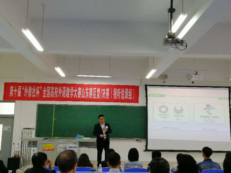 第十届“外教社杯”全国高校外语教学大赛(大学英语组)山东赛区复/决赛于2019年5月18日至19日在山东科技大学成功举行。本次比赛由山东省教育厅高等教育处、山东省本科教育大学外语教学指导委员会和上海外语教育出版社联合主办,山东科技大学承办。比赛分为综合课组、视听说课组和微课组三个组别,来自省内53所高校的85位选手和41个代表队报名参赛。江南网官方站入口_江南(中国)推送马艳红参加综合课组、李文彬参加(视)听说组、以及王梅、尹川、朱晓蒙、秦兆荣、蒋珊珊为小组参加微课组比赛。经过初赛、复赛、决赛等比赛环节的激烈角逐,江南网官方站入口_江南(中国)推送老师分别荣获综合课组三等奖,(视)听说组三等奖、微课组二等奖的优异成绩。