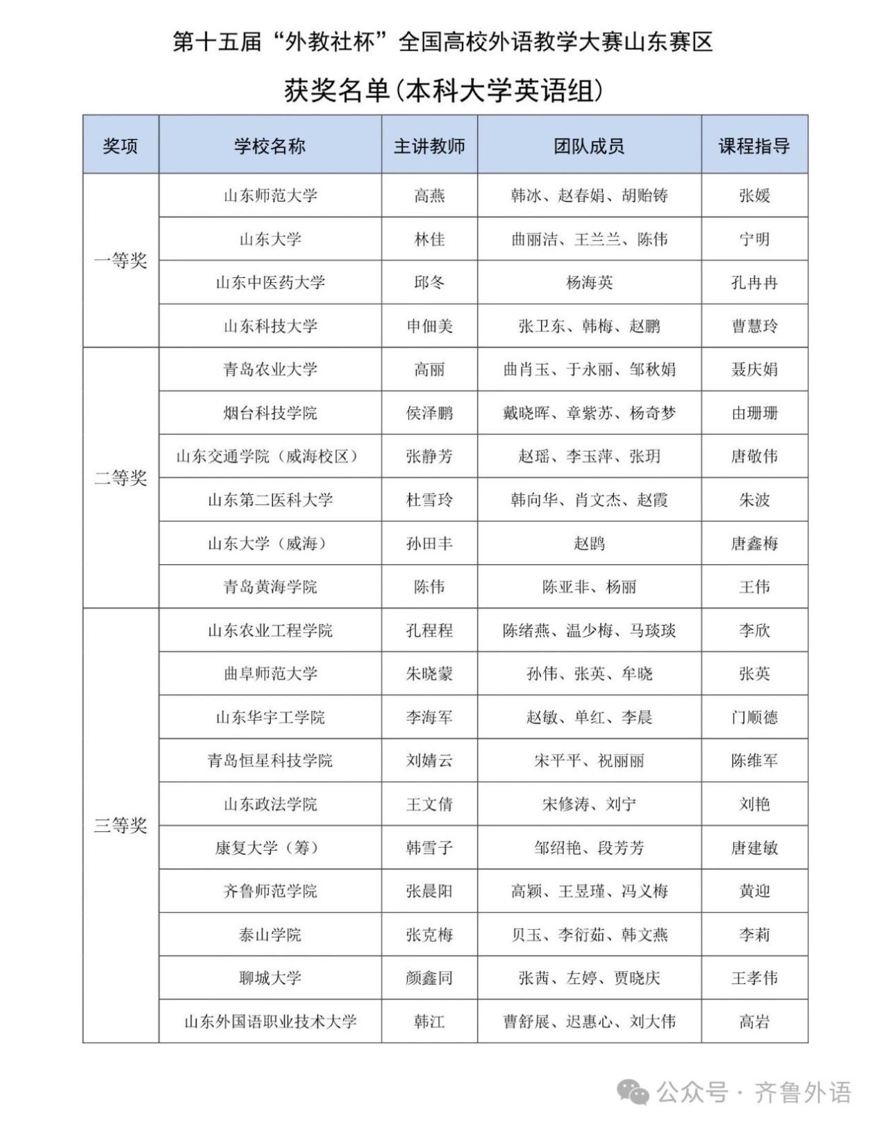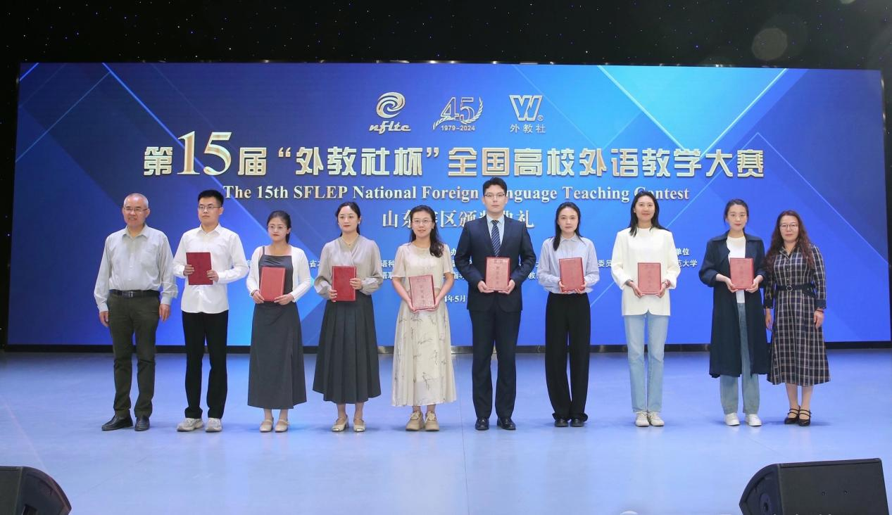此次比赛由山东省教育厅发文,山东省本科教育大学外语教学指导委员会、上海外语教育出版社主办,山东师范大学承办。大赛共有省内本科大学英语组54个团队参赛,经过初赛、复赛和决赛的激烈角逐,最终有20个团队获得奖项。朱晓蒙“大学英语”教师团队凭借精湛的教学设计、稳定的教学展示和过硬的综合素养,在比赛中脱颖而出,展现了我校大学英语教师队伍的整体水平。