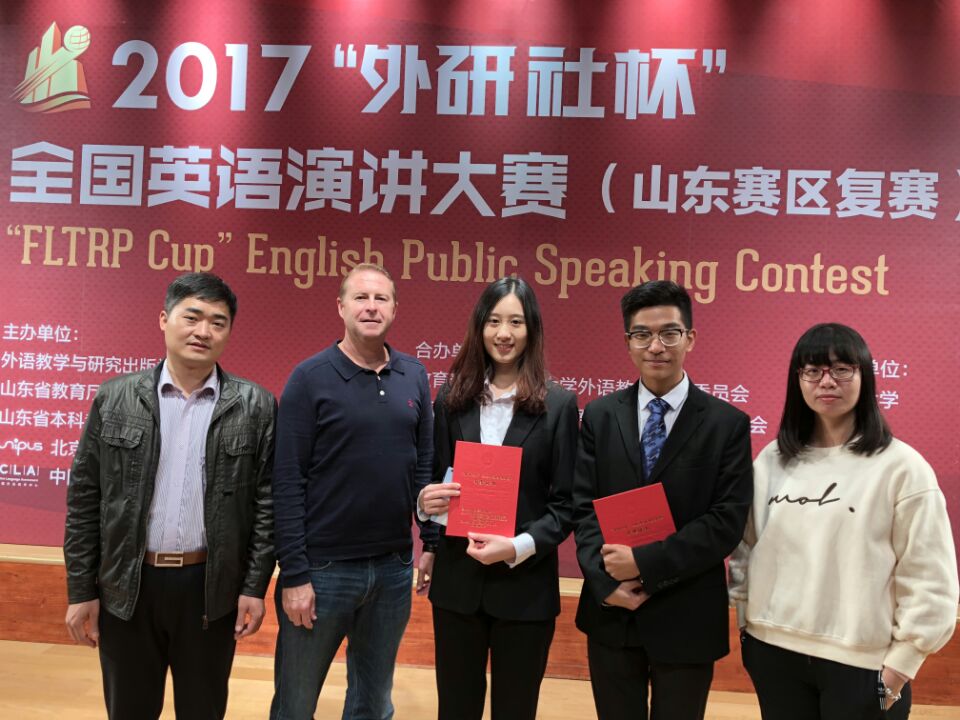 我校公共外语教学部教师孙海珊指导的2015级文学院学生张佳育、外国语学院教师邢加新和外籍教师Mark Fisher指导的2016级外国语学院学生葛宇飞分别参加了非专业组、专业组的比赛。比赛中两位同学自信从容、稳定发挥,展示了较高的演讲素质和演讲水平。经过激烈角逐,两位同学各自斩获二等奖一项。