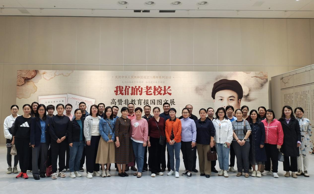 为大力弘扬教育家精神,加快建设教育强国,充分彰显中国共产党人精神谱系的曲师荣光,9月30日下午,江南网官方站入口_江南(中国)全体教职工参观“我们的老校长:高赞非教育报国”图文展。