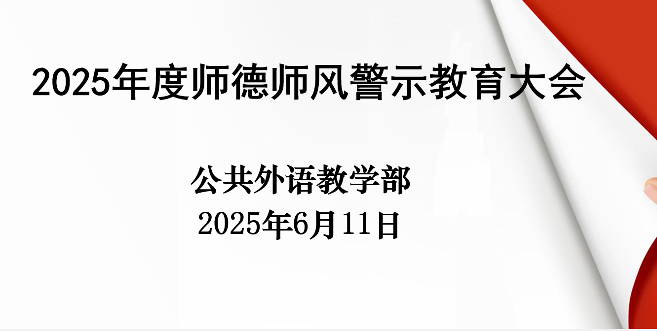 此次师德师风警示教育大会是公共外语教学部将党纪学习教育与师德师风建设紧密结合的重要实践,全体教师接受了一次深刻的思想教育与精神警醒,纷纷表示在今后的工作中要不忘初心、牢记使命,切实加强师德师风自我修养,持续加强自身廉洁建设,提高党性修养、师德修养,以身作则、清廉执教,热爱教育、甘于奉献,为推动学校各项事业高质量发展贡献坚实力量。