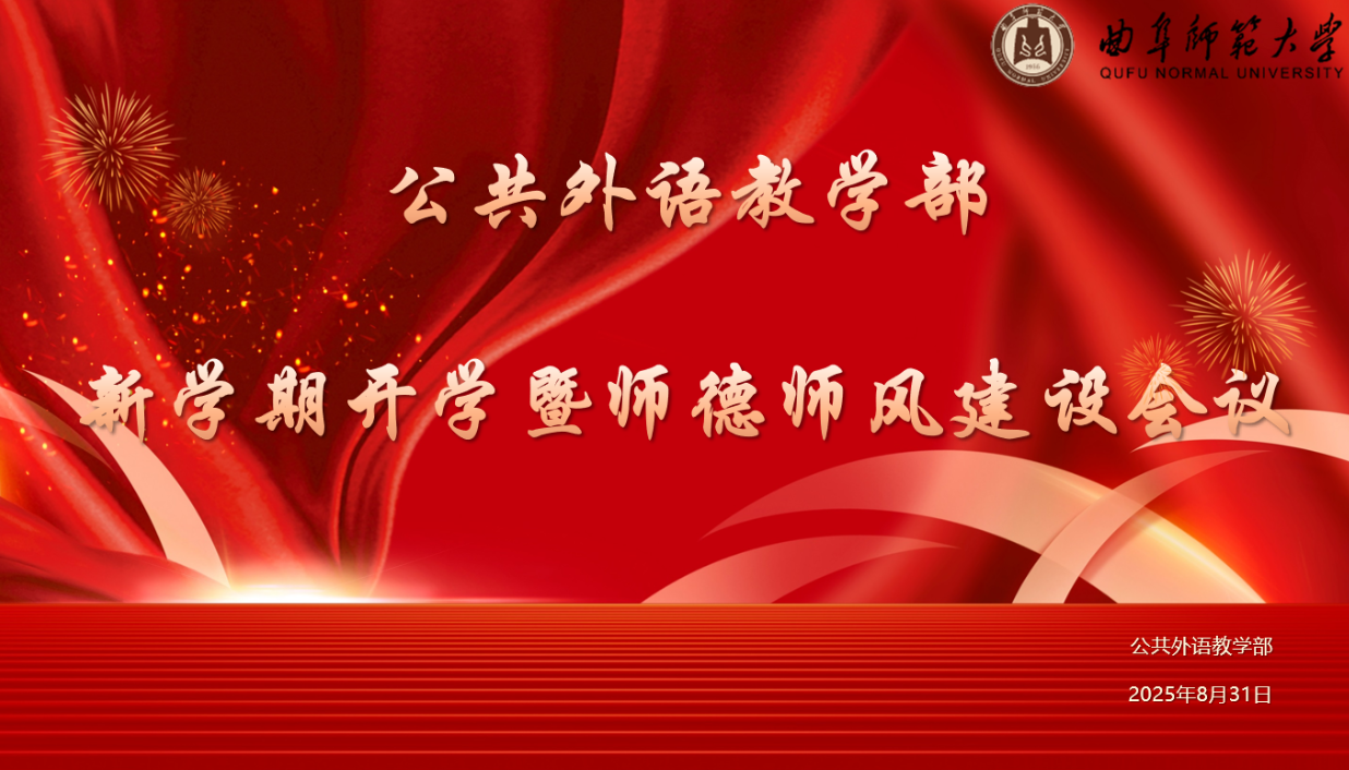 8月31日,公共外语教学部召开2025-2026学年秋季学期新学期开学暨师德师风建设会议,传达学校新学期工作会议精神,部署教学、科研等各方面重点工作,并深入开展师德师风专题教育。会议由公共外语教学部主任王福祥主持,两校区全体教职工参加会议。